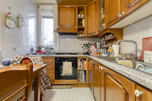 In gradevole contesto appartamento in buone condizioni, silenzioso 104 mq catastali composto da: ampio ingresso arredabile, sala con balcone, cucina abitabile, due camere matrimoniali, bagno, due ripostigli, altro balcone e cantina termo autonomo Ape F € 320.000