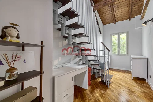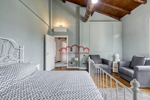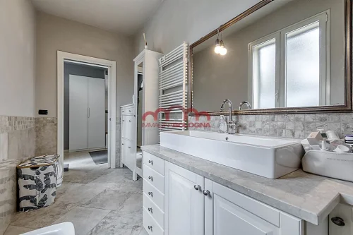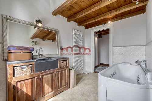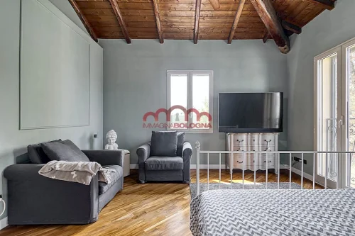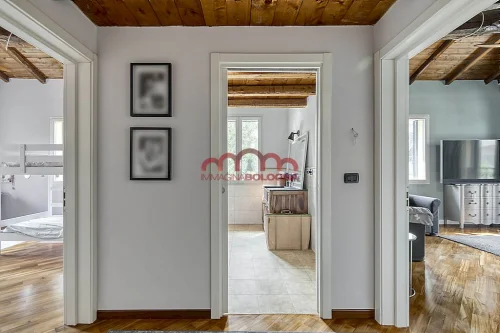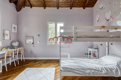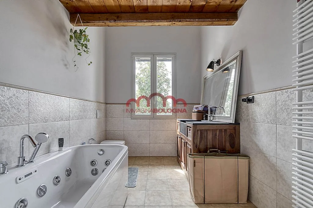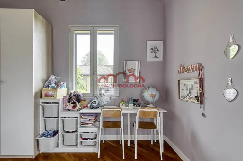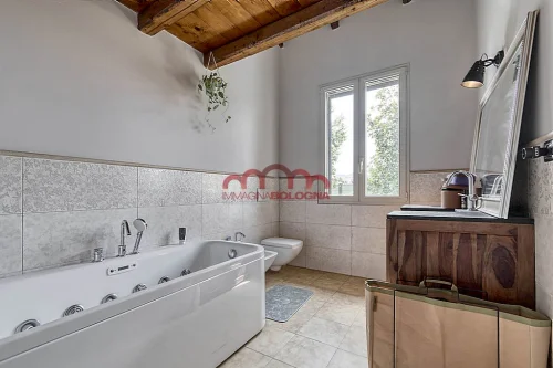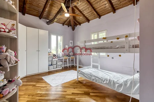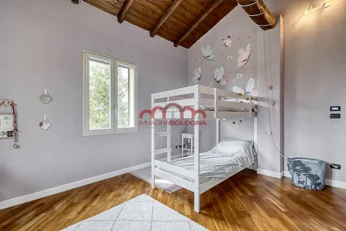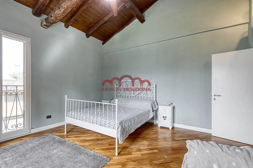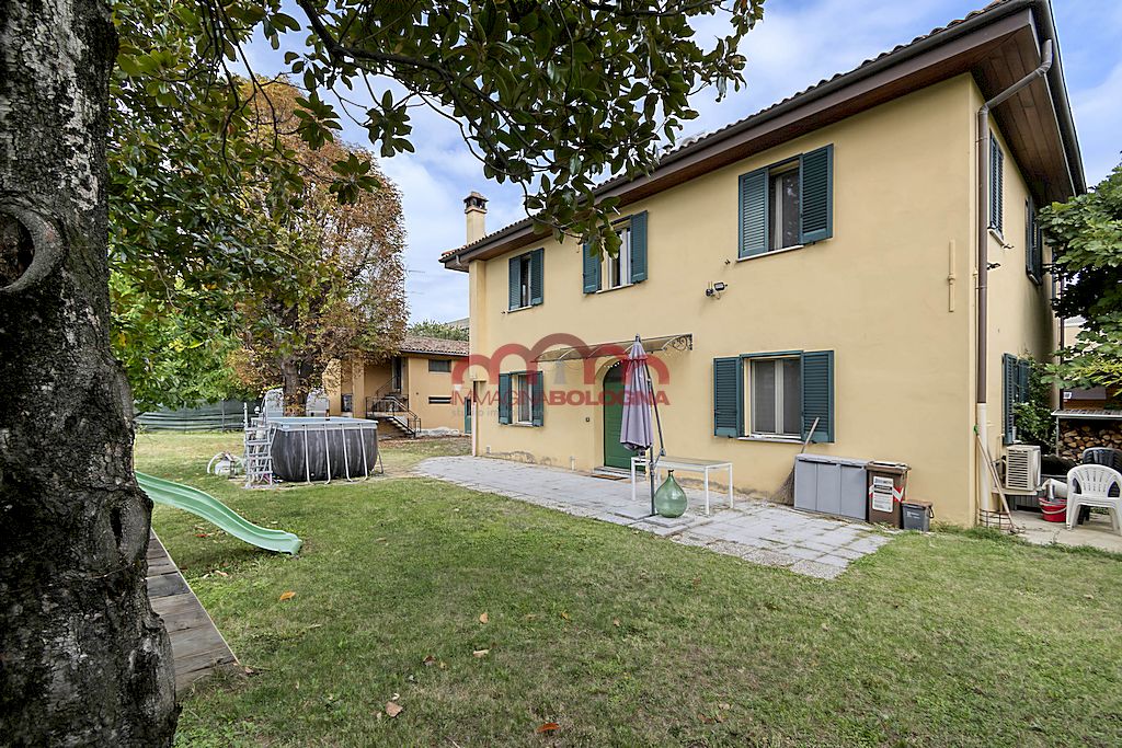 ZOLA PREDOSA PORZIONE DI VILLETTA BIFAMILIARE VIR202 All'interno del comune di Zola Predosa (via Nannetti) vendiamo porzione di villetta bifamiliare in ottime condizioni con ampio giardino privato. L'immobile si sviluppa su più livelli ed è così composto: al piano terra troviamo un grande giardino privato (in parte lasciato a verde ed in parte pavimentato ed attrezzato di barbecue in muratura) in cui è possibile parcheggiare diverse auto e posizionare una piscina. Dal giardino si accede dentro casa dove ci accolgono l'ingresso arredabile, la cucina abitabile, la sala con camino e due bagni. Al primo livello troviamo 2 ampie matrimoniali di oltre 20 mq cadauna ed entrambe con soffitti a doppio volume, lo studio (o camera singola) ed il terzo bagno. Inoltre, al piano superiore, è presente una ampia mansarda abitabile con velux in cui sono presenti una lavanderia, la cabina armadio ed il locale tecnico della caldaia. All'interno della mansarda, è possibile ricavare altre due camere. All'esterno del giardino privato, è inoltre presente un fabbricato accessorio indipendente in cui ci sono le cantine, il garage ed un comodo magazzino attrezzato come spazio per gli hobby/tavernetta (richiesta € 30.000). Le finiture interne sono di ottima fattura: travi in legno a vista, parquet, marmo, riscaldamento a pavimento. Pronta per essere abitata. Libera a rogito. Ape E, Ipe 200. € 330.000 Per informazioni: Immagina Bologna 051.480459 - 342.7512118 info@immaginabologna.it